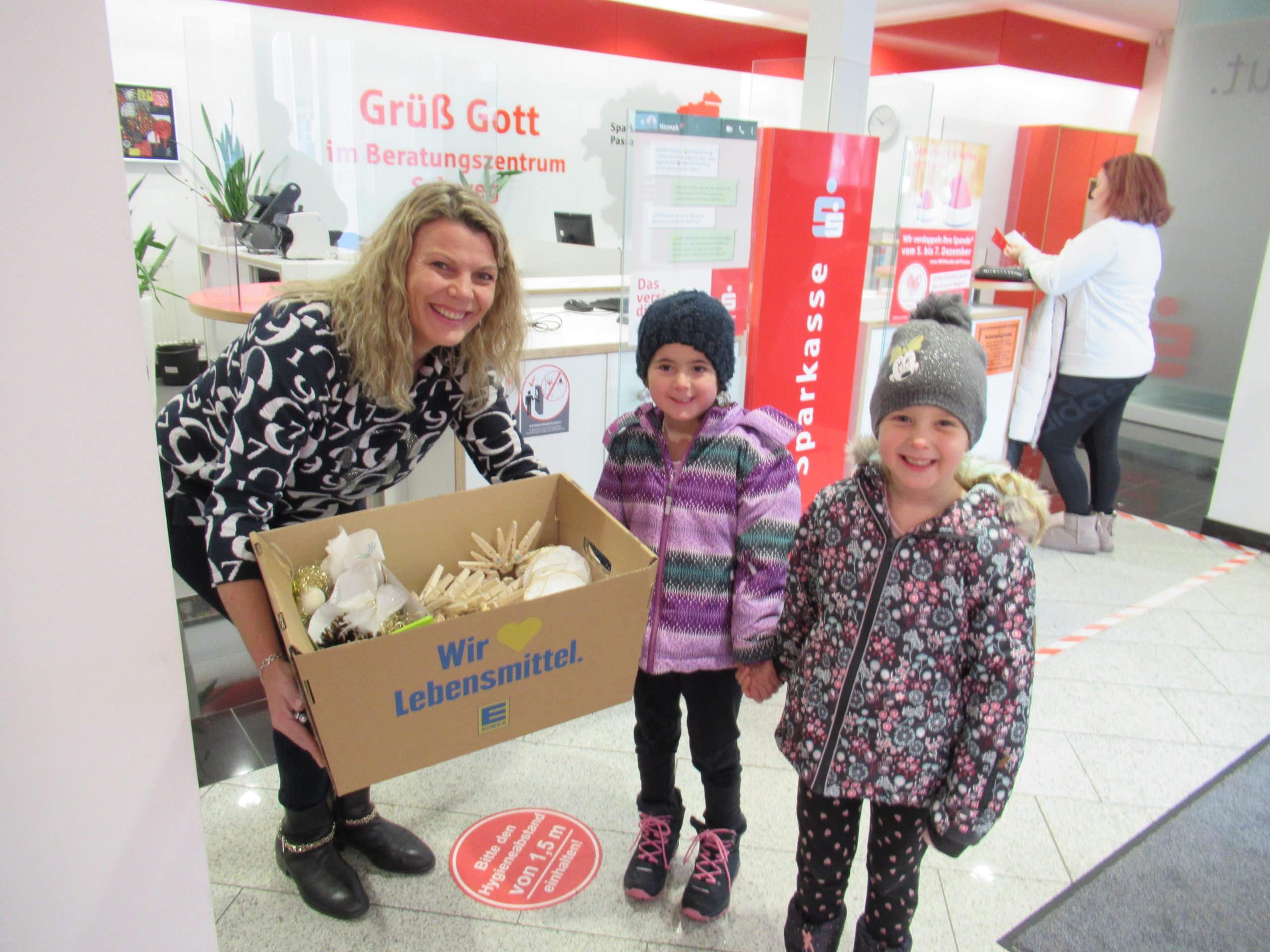 Am 27.11.2023 brachten zwei Kinder, stellvertretend für den ganzen Kindergarten, selbst gebastelten Christbaumschmuck zur Sparkasse. Der Schmuck wird dort verkauft und der Erlös kommt anschließend den Kindergartenkindern zugute. Vielen Dank…